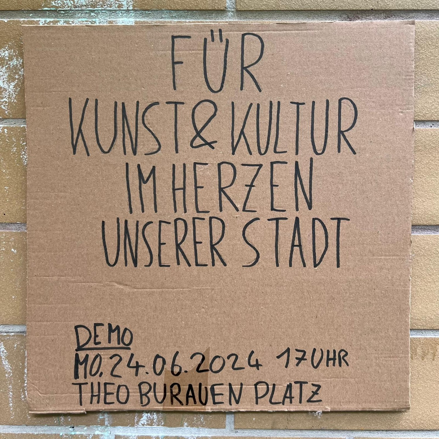 Für Montag, den 24. Juni, um 17 Uhr rufen wir alle Künstler:innen und Kulturschaffenden, sowie jedem dem die Kultur am Herzen liegt, zu einer Demonstration für die freie Kunst- und Kulturszene am Rathaus auf.