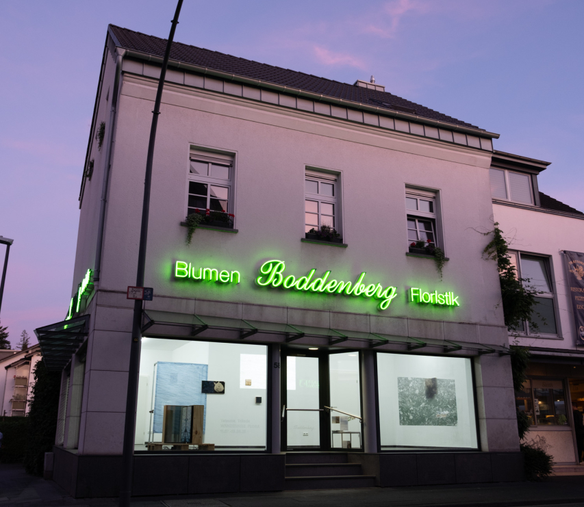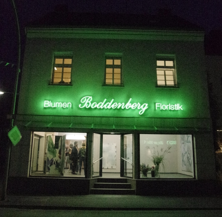 Boddenberg ist ein Atelierhaus mit Ausstellungsraum in einem ehemaligen Blumengeschäft. Eines der zentralen Anliegen ist das Sichtbarmachen von künstlerischen Diskurse über die Innenstadt hinaus in den Außenbezirken Kölns. Gezeigt werden wechselnde Ausstellungen mit Fokus auf Einzelpositionen. Namensgebend sind die beiden großformatigen Leuchtschriften an der Hausfassade, die während der Öffnungszeiten hellgrün erstrahlen. Traditionelle Strukturen des vorstädtischen Einzelhandels werden hierbei programmatisch für Ausstellungen genutzt und mit neuen Positionen bespielt.