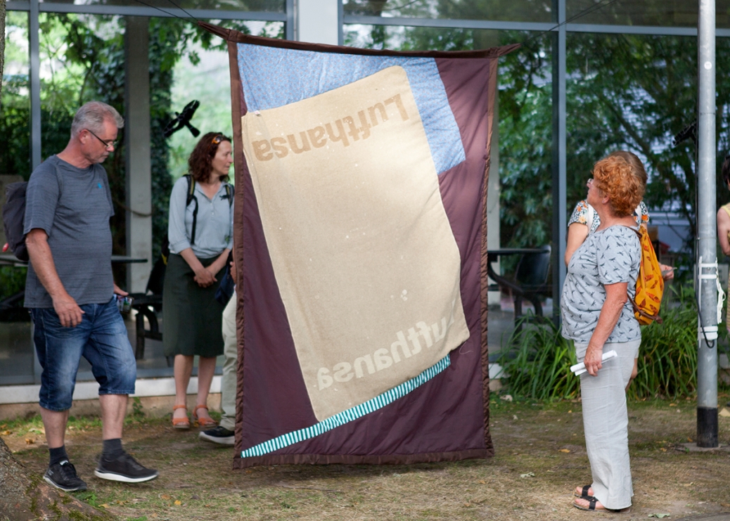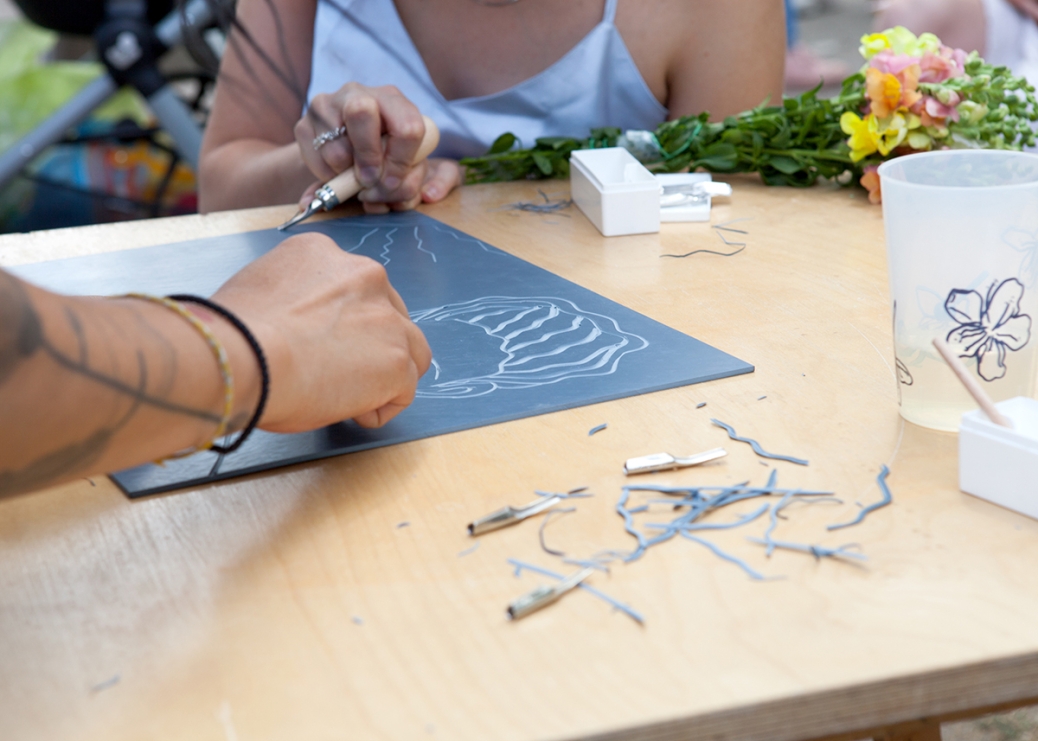 The information stand is also the meeting point for the performative walk on Saturday from 5 PM, for the linoleum printing workshop EinSchnitte with Yasmin Hasan (iJuLa) on Sunday from 1 -5 PM, and for other interventions by the action lab PAErsche on Sunday from 2 PM.