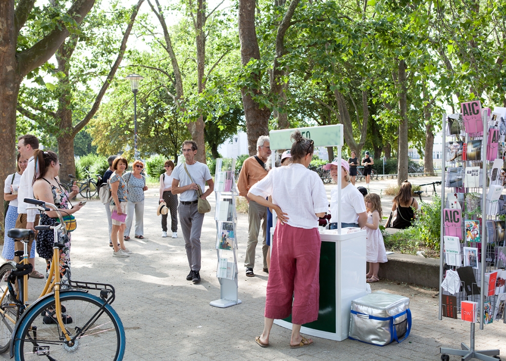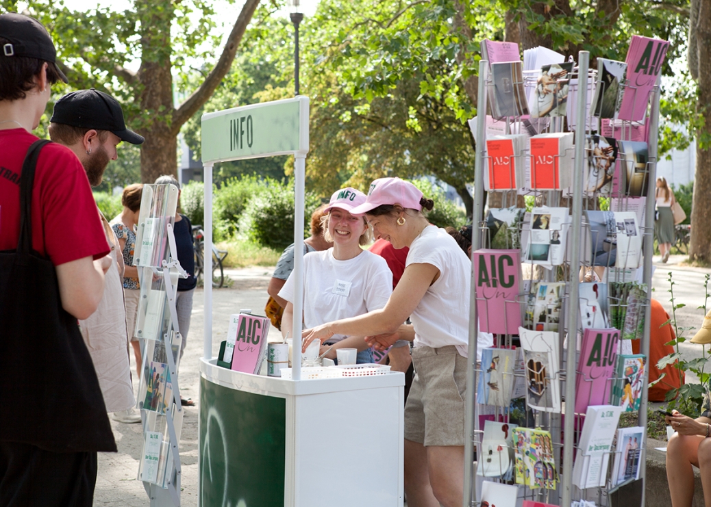 The AIC ON information stand in the Inner Grüngürtel is designed by the artists Paula Erstmann and Marie Donike. From Friday to Sunday, visitors can find out everything there is to know about Cologne's art initiatives. In addition to the AIC ON booklet, a culinary snack set will be available to fortify visitors on their way through the city to the various locations.