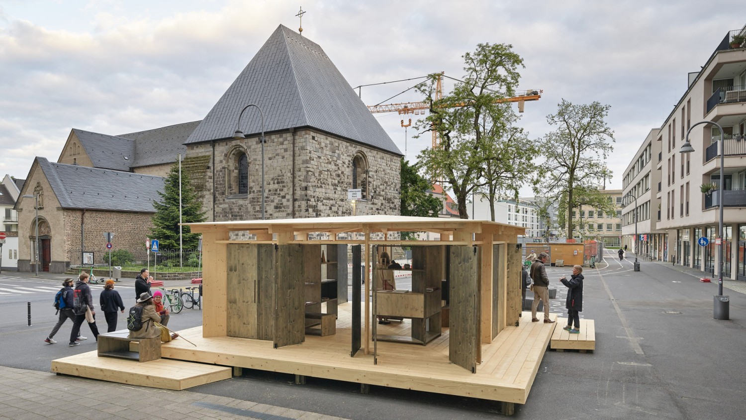 Der Pavillon ist ein täglich begehbares Arbeitsgebäude, in dem die Kölner Bürgerinnen und Bürger am „Protokoll der Zwischenzeit“ arbeiten – der Zeit zwischen dem Einsturz am 3. März 2009 und der Gegenwart. Im Straßenbild des Waidmarkts verschwinden die Auswirkungen der Einsturz- Katastrophe allmählich aus dem Blickfeld, aber der Ausnahmezustand ist geblieben und zur Normalität geworden. In den sechzehn Jahren seit dem Einsturz haben sich die Schränke mit Büchern über das Ereignis, seine Folgen und die Wahrheitsfindung gefüllt. Der Panorama-Pavillon sammelt Gefühle. Er ist ein offenes Haus für eine offene Stadtwunde. Das Historische Archiv der Stadt Köln wird das Ergebnis dieser Sammlung als Vorlass aufnehmen und bewahren, damit die Nachwelt erfahren kann, wie sich die Katastrophe auf die Menschen und ihr individuelles Erleben ausgewirkt hat. Das können nur die Kölnerinnen und Kölner selbst festhalten; die Künstler sind ihre Gastgeber.
