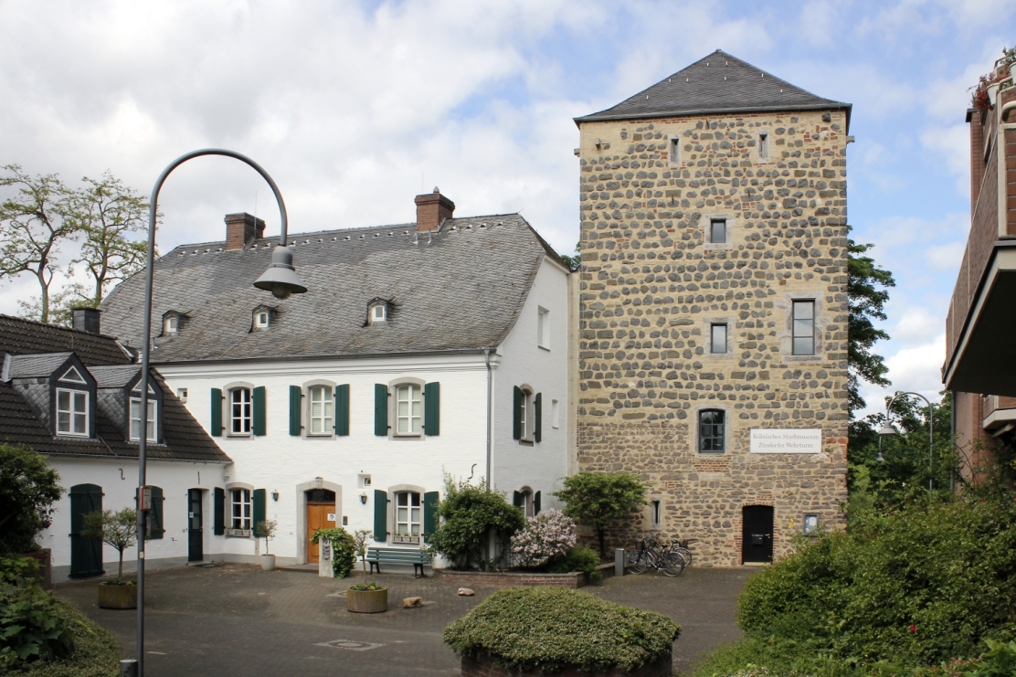 Der mehr als 800 Jahre alte Zündorfer Wehrturm bietet einen architektonisch besonderen Raum für zeitgenössische Kunst und Kultur. Er liegt an der Freizeitinsel Groov, einem der reizvollsten Ausflugsziele im rechtsrheinischen Köln und ist nicht nur eines der markantesten Wahrzeichen von Zündorf, sondern auch ein einzigartiger Ausstellungsort. Im Mittelalter zu Wohn- und Verteidigungszwecken genutzt, hält der Turm für Besucher*innen eine bauliche Besonderheit bereit: Den von der Kölner Architekturlegende Gottfried Böhm Ende der 1970er-Jahre in die mittelalterliche „Hülle“ eingehängten modernen Innenausbau aus Sichtbeton.